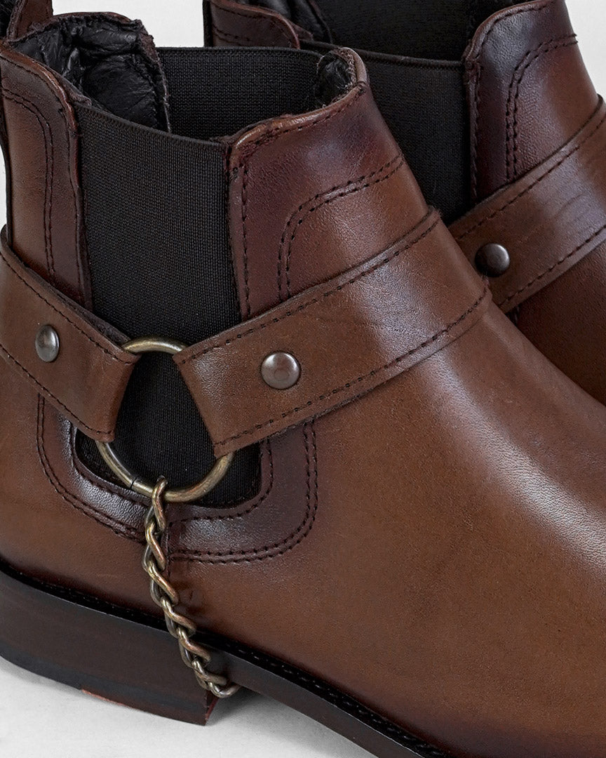 Chelsea fabricada en corte y forro vacuno, plantilla multiconfort y suela de cuero.